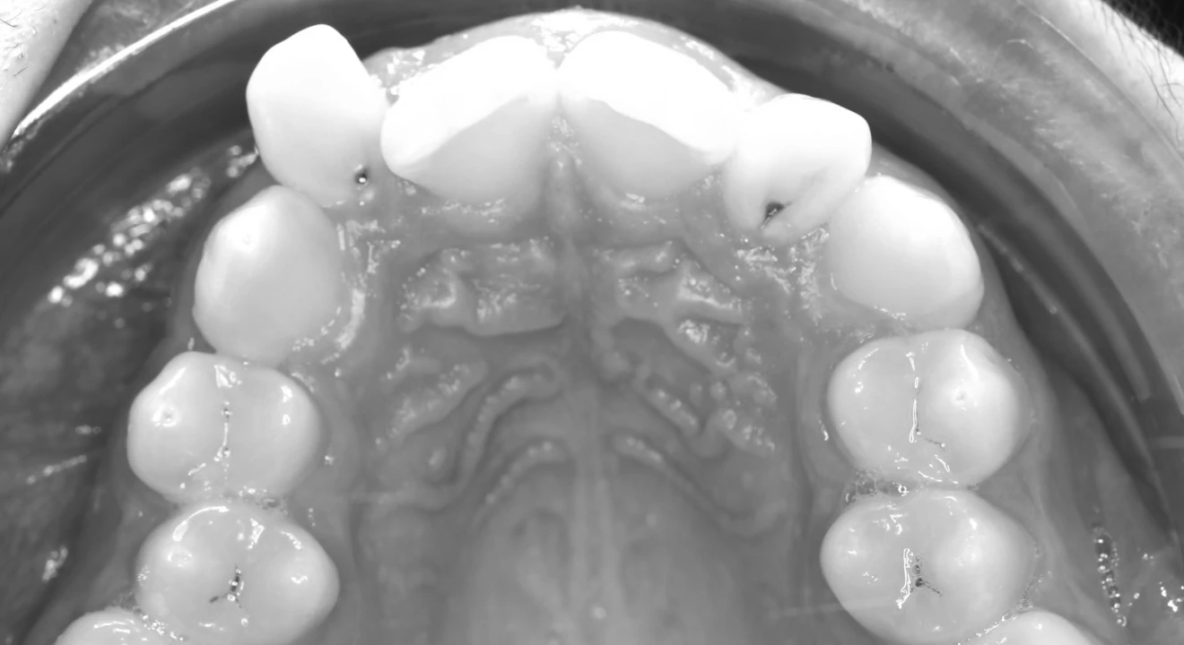 Un examen complet a été réalisé afin d’évaluer l’état des dents, l’occlusion et la santé gingivale du patient.Des empreintes numériques, des radiographies et des photographies cliniques ont été effectuées afin d’établir un diagnostic précis et de planifier le traitement le plus adapté.Ce bilan a mis en évidence un encombrement dentaire au niveau antérieur, accompagné d’une légère malocclusion. Ces éléments ont conduit à proposer un traitement par aligneurs Invisalign, permettant de corriger progressivement le positionnement des dents tout en respectant les objectifs esthétiques et fonctionnels du patient.